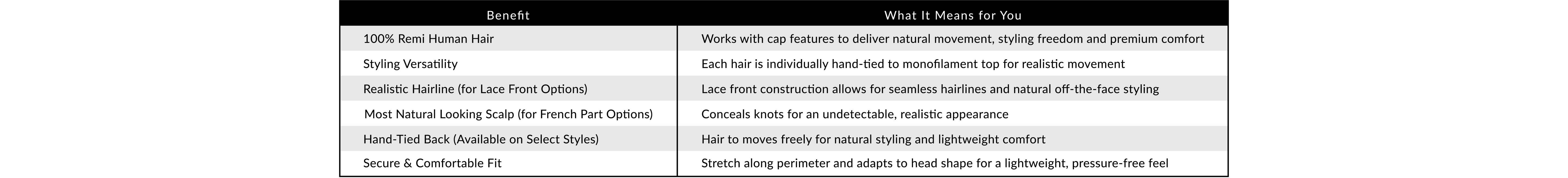 Within our Remi human hair options, you’ll find both standard and upgraded cap constructions. No matter which you choose, each design is created with thoughtful details that enhance your wig wearing experience from fit and feel to overall appearance.