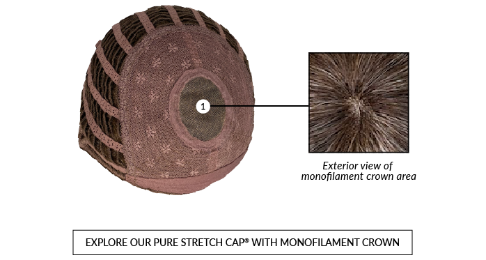 Some styles in our Pure Stretch Cap® Collection feature a monofilament crown for added realism in the area where the hair naturally parts or lifts. You can expect all the features of the standard Pure Stretch Cap® construction, plus: