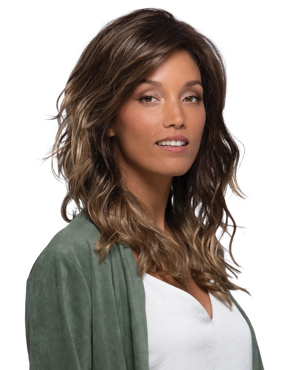 Reflecting the smooth, warmth of a latte, this delicious color’s soft brown base is artfully drizzled with sweetly satisfying caramel blonde highlights.